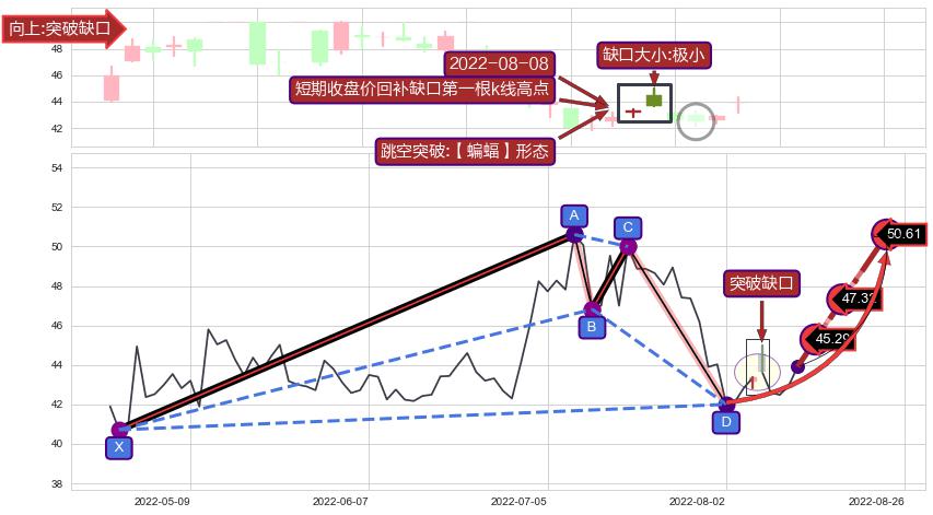 ➣ 已完成【蝙蝠】形态起点X: 2022-04-22, 终点D: 2022-08-02, 共69交易日