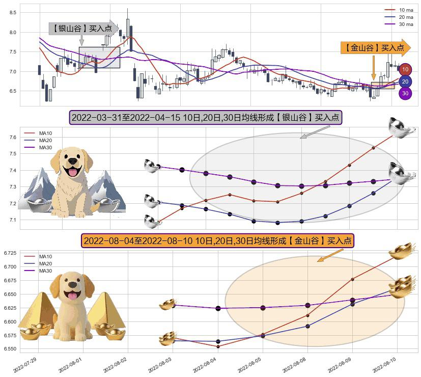 ⚄ 2022-08-05-日至2022-08-10-日显现 10日-20日-30日均线 【金山谷】买入点 其再次确认了买入信号,可靠性更强,买入