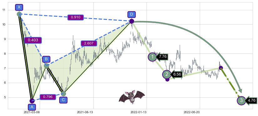 ➣ 已完成【蝙蝠】形态起点X: 2021-01-05, 终点D: 2021-12-02, 共212交易日