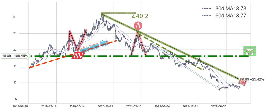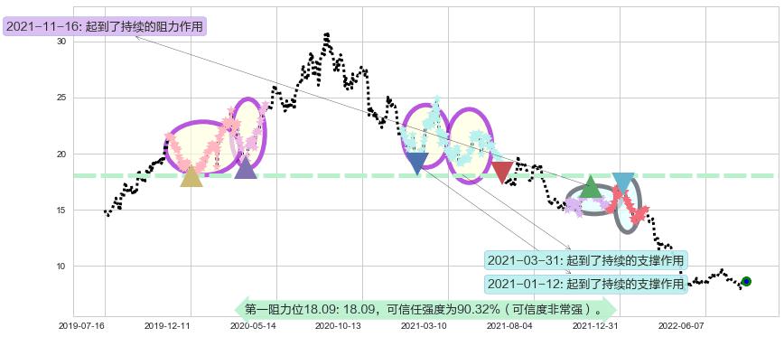 ♘ 阻力价格位18.09,可信任强度90.32%,距离最后交易2022-08-12形成的收盘价格8.68相差 +108.45%