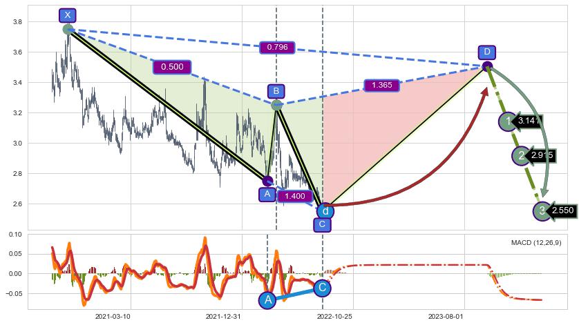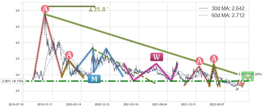 ➣ D点拟合预测价格3.506,距离最后交易收盘价格2.590相差 +35.35%