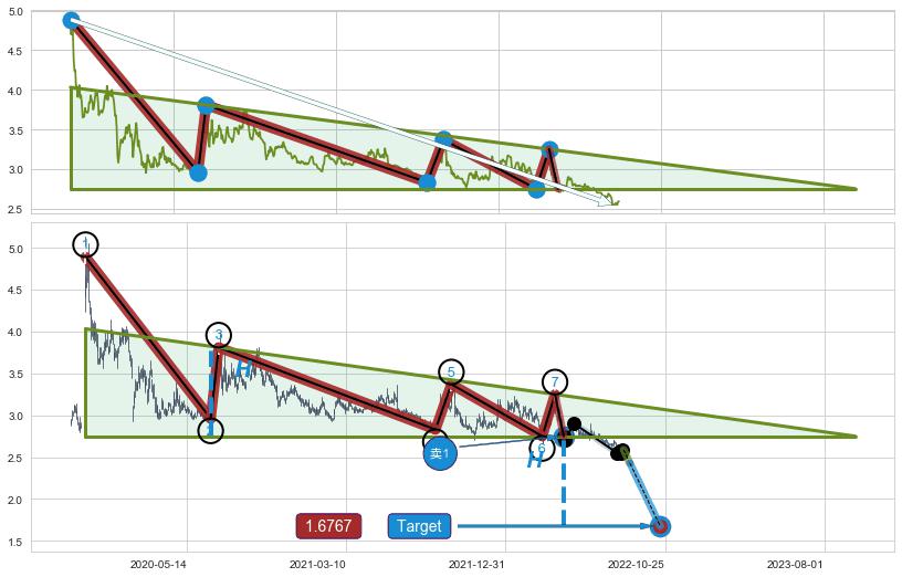 ➢ 【已确认突破】最后价格:2.590与最小【整理】第一目标价格→(2022-10-17: 1.6767 )相较: 下跌空间【较大】