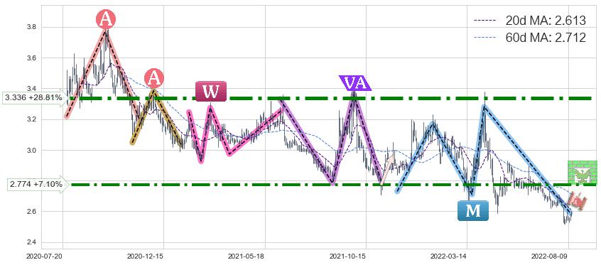 ♘ 阻力价格位3.336,可信任强度99.00%,距离最后交易2022-08-12形成的收盘价格2.590相差 +28.81%