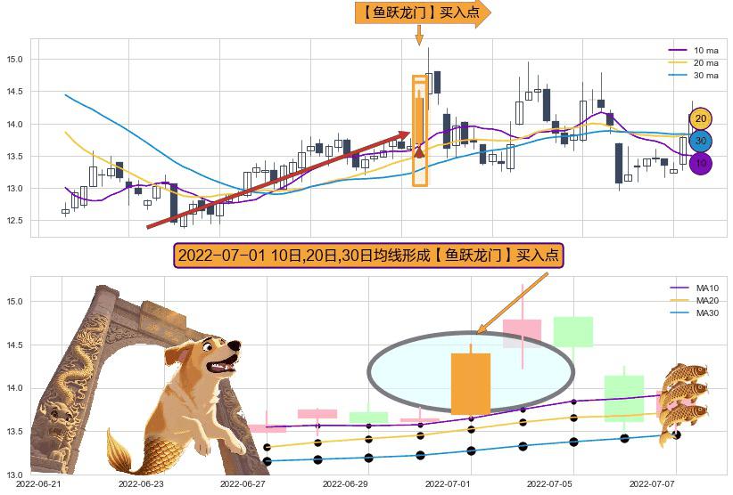 形态多维评估: ⚀ 2022-07-01日显现 10日-20日-30日均线 【鱼跃龙门】买入点 看多信号,后市看涨,买入