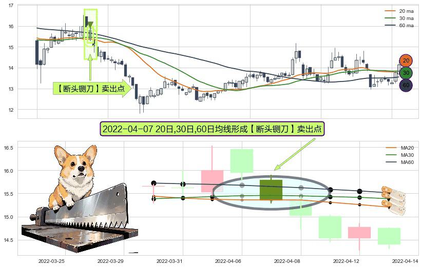 形态多维评估: ⚀ 2022-04-07日显现 20日-30日-60日均线 【断头铡刀】卖出点 看空信号,后市看跌,卖出