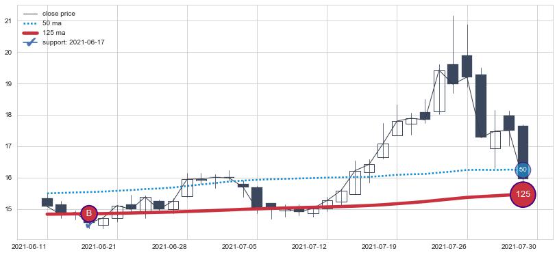上涨趋势2021-06-11-2021-07-30,均线125确认关键支撑1处