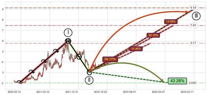 ♘ 支撑价格位2.082,可信任强度95.14%,距离最后交易2022-08-12形成的收盘价格3.670相差 -43.26%