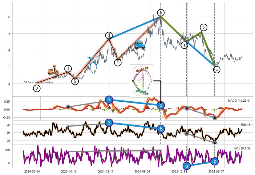 ➣ 1,3,5驱动浪KDJ走势未出现明显背离