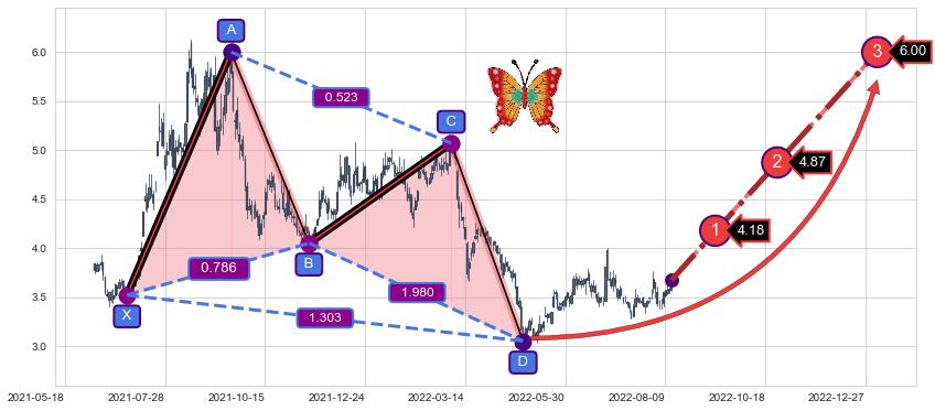 ➣ 已完成【蝴蝶】形态起点X: 2021-07-01, 终点D: 2022-04-26, 共199交易日