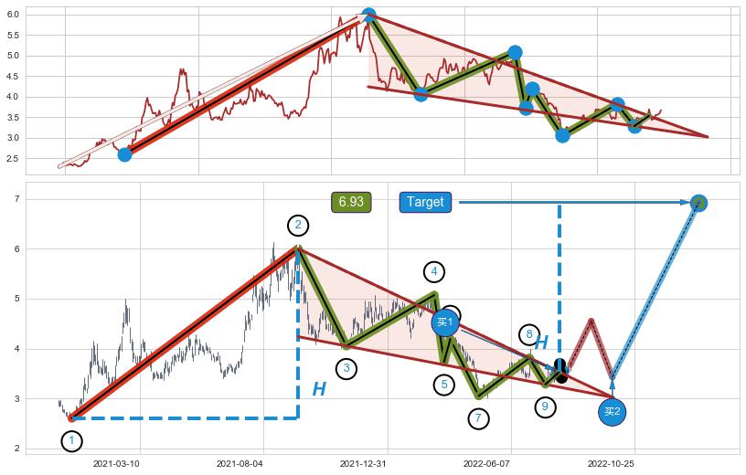 ➢ AI预测: 假定反转如期而至,第❸价格目标位置(2023-01-04, 6.00)