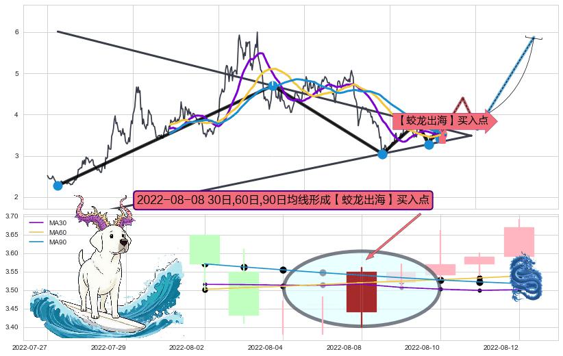 ➢ 【买1】: 激进型 买点 →(2022-08-01: 3.529 )形成突破降🚩楔型【整理】形态