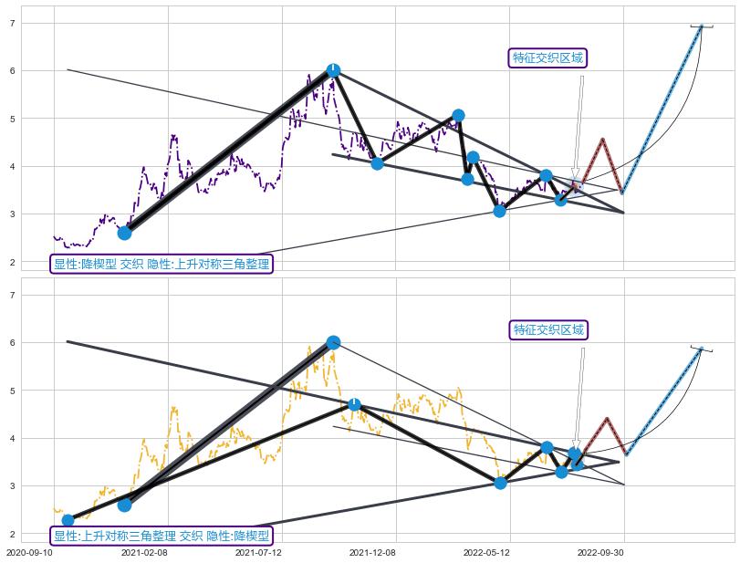 ➣ 【未确认突破,预测即将形成突破】上升【对称】三角形整理起点:2020-09-28, 预测突破点:2022-08-03,形态共447交易日