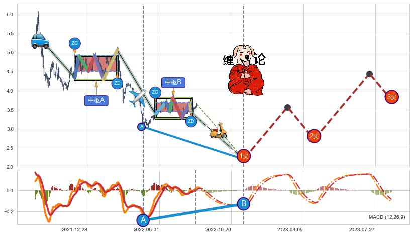➣ 【AI智能预测】缠论终点位置: (2022-11-14: 2.200 ), 预测段共66交易日, 缠论共286交易日