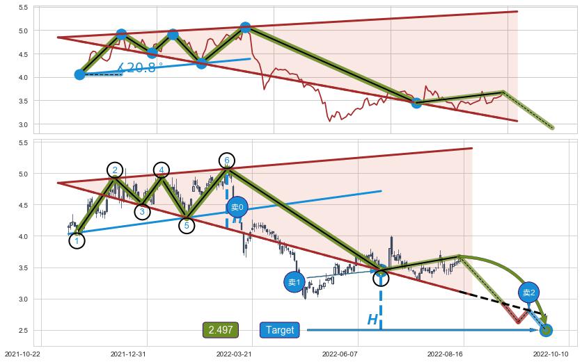 ➢ AI预测: 假定反转启动后, 第❷目标位置(2022-10-14, 3.572)