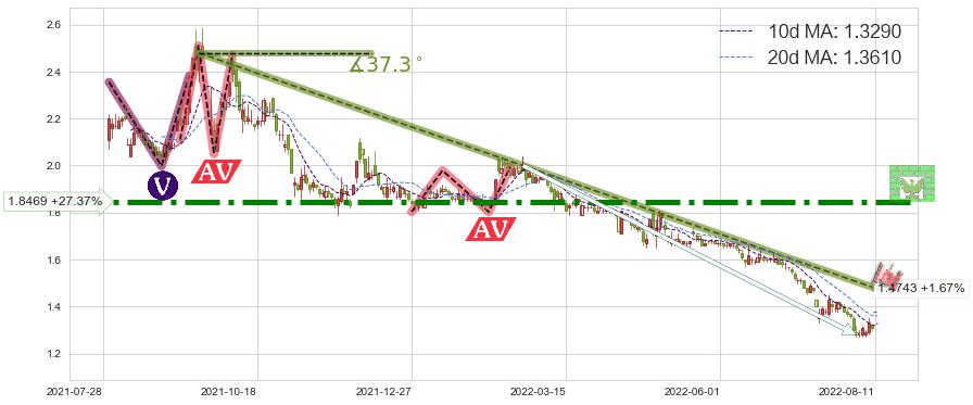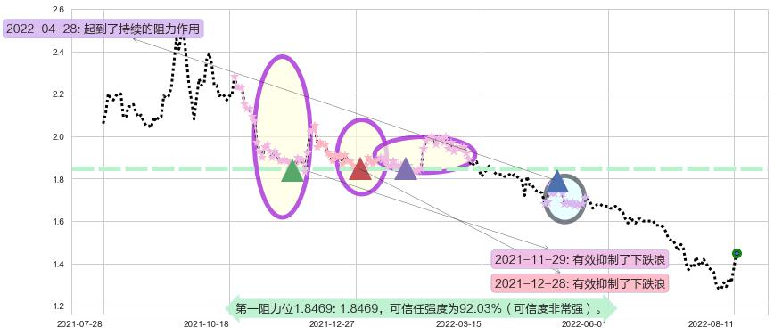 ♘ 阻力价格位1.8469,可信任强度92.03%,距离最后交易2022-08-12形成的收盘价格1.4500相差 +27.37%