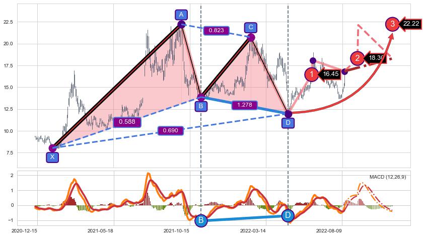 ➢ AI预测: 假定反转继续,第❸价格目标位置(2022-11-09, 22.22)