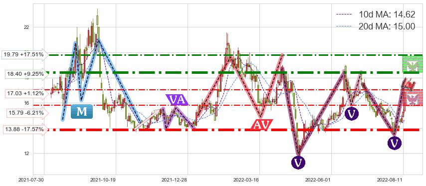 ➢ 2022-08-12到达第❶价格目标位置16.84