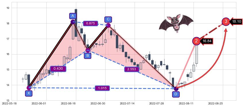 ➣ 已完成【蝙蝠】形态起点X: 2022-05-24, 终点D: 2022-08-03, 共51交易日