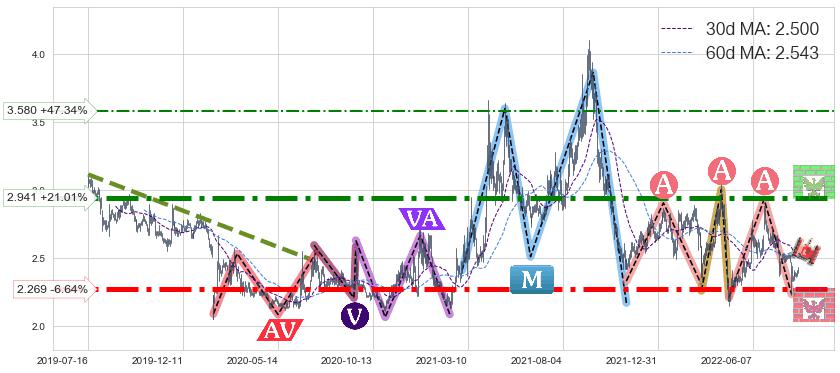 ♘ 阻力价格位2.941,可信任强度92.09%,距离最后交易2022-08-12形成的收盘价格2.430相差 +21.01%