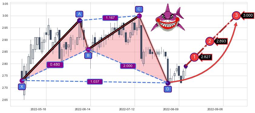 ➣ 已完成【鲨鱼】形态起点X: 2022-04-26, 终点D: 2022-08-02, 共67交易日