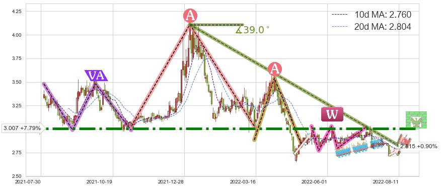 ➣ 【已确认突破】最后价格:2.790与最小【整理】第一目标价格→(2022-09-13: 2.996 )相较: 上涨空间【较大】