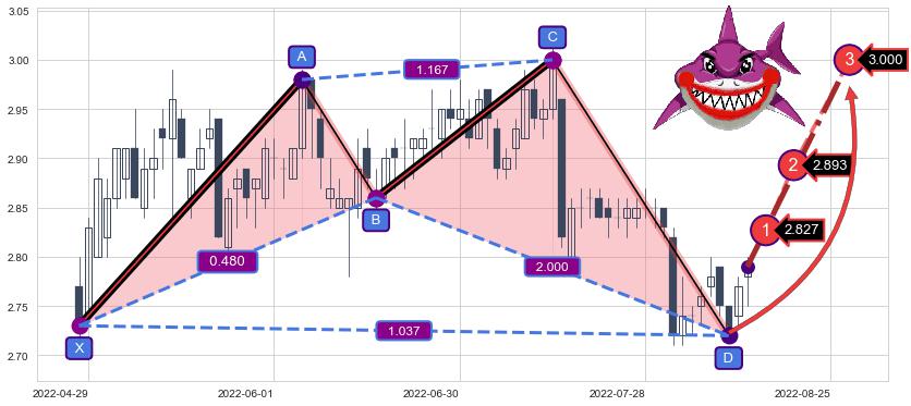 ➣ 已完成【鲨鱼】形态起点X: 2022-04-28, 终点D: 2022-08-10, 共71交易日