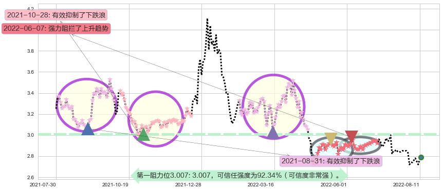 ♘ 阻力价格位3.007,可信任强度92.34%,距离最后交易2022-08-12形成的收盘价格2.790相差 +7.79%