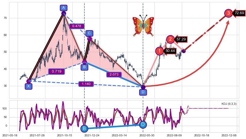 ➣ 已完成【蝴蝶】形态起点X: 2021-06-16, 终点D: 2022-04-26, 共210交易日