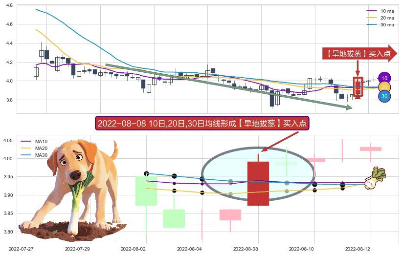 ⚀ 2022-08-08日显现 10日-20日-30日均线 【旱地拔葱】买入点 看多信号,后市看涨,买入