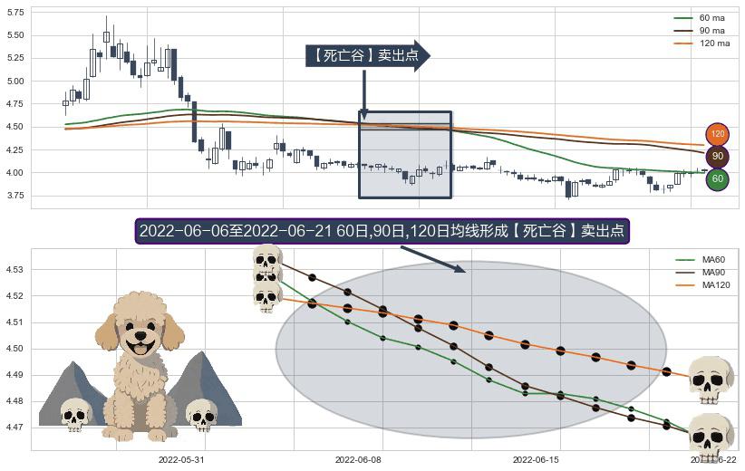 ⚀ 2022-06-07-日至2022-06-21-日显现 60日-90日-120日均线 【死亡谷】卖出点 看空信号,后市看跌,卖出