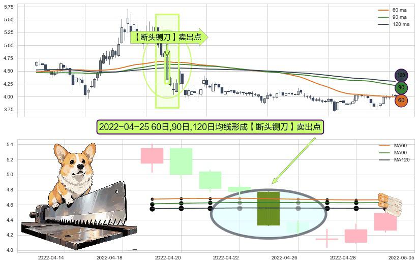 ⚀ 2022-04-25日显现 60日-90日-120日均线 【断头铡刀】卖出点 看空信号,后市看跌,卖出