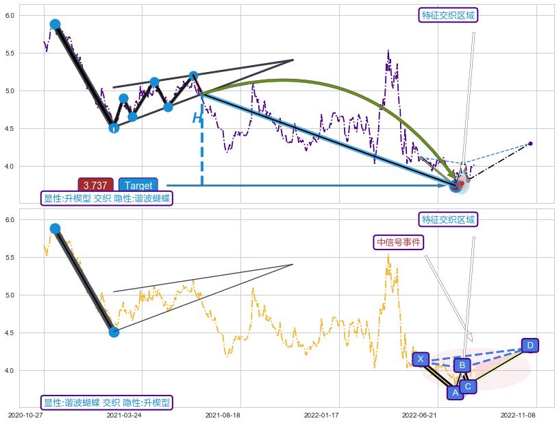 ➣ 未完成【蝴蝶】形态起点X: 2022-05-26, 已到达C点: 2022-08-03, 预测最终D点: 2022-10-31, 共112交易日
