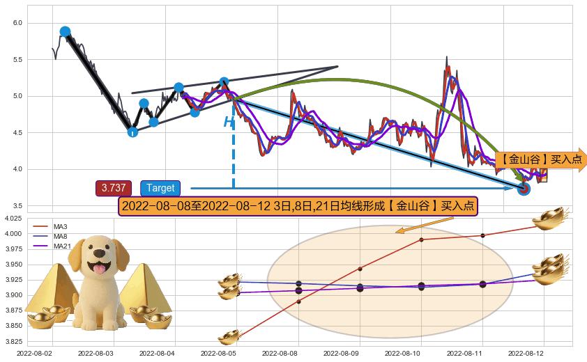 ♘ 阻力价格位4.14,可信任强度83.30%,距离最后交易2022-08-12形成的收盘价格4.03相差 +2.72%
