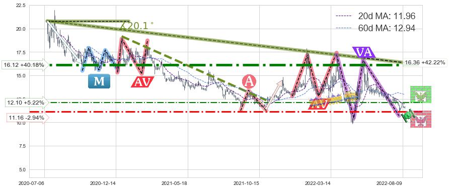 ♘ 阻力价格位16.12,可信任强度94.30%,距离最后交易2022-08-12形成的收盘价格11.50相差 +40.18%