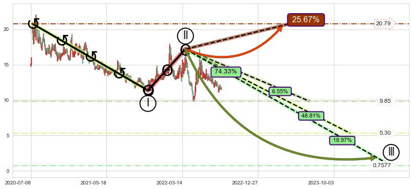 ➣ 大趋势循环浪继续向下概率74.33%