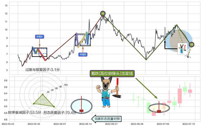 ➢ 🕰 价格走势在2022-07-01至2022-07-01期间形成看跌(高位倒锤头)流星线,残存影响值:-3.11