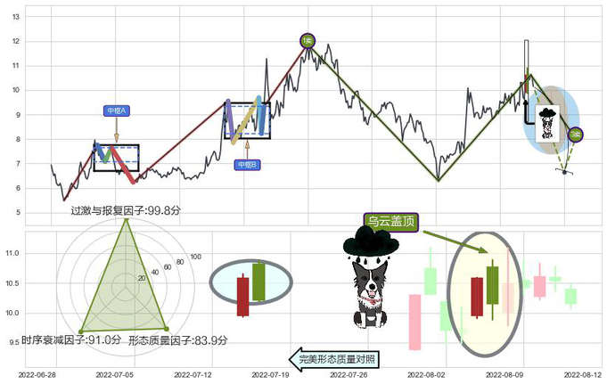 ➢ 🕰 价格走势在2022-08-04至2022-08-05期间形成乌云盖顶,残存影响值:-8.29