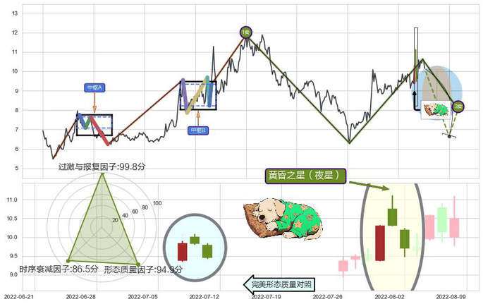➢ 🕰 价格走势在2022-07-29至2022-08-02期间形成黄昏之星(夜星),残存影响值:-8.33