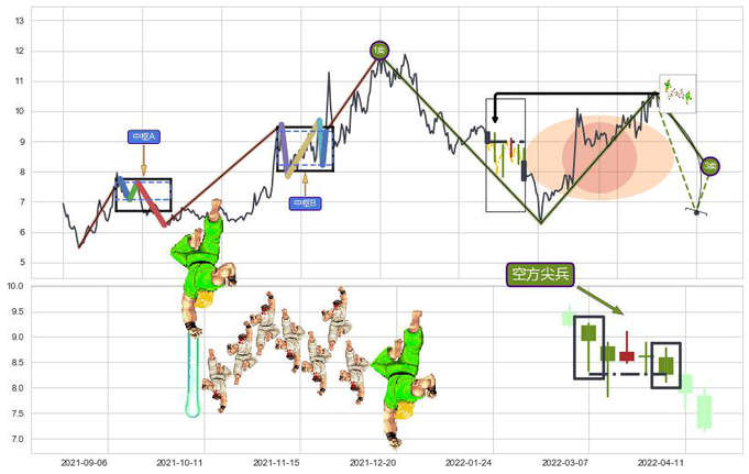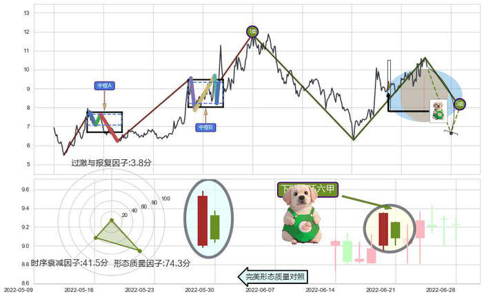➢ 🕰 价格走势在2022-03-07至2022-04-06期间形成空方尖兵,残存影响值:-2.30