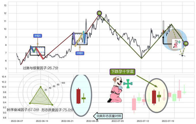 ➢ 🕰 价格走势在2022-07-13至2022-07-14期间形成下跌孕十字星,残存影响值:-4.17