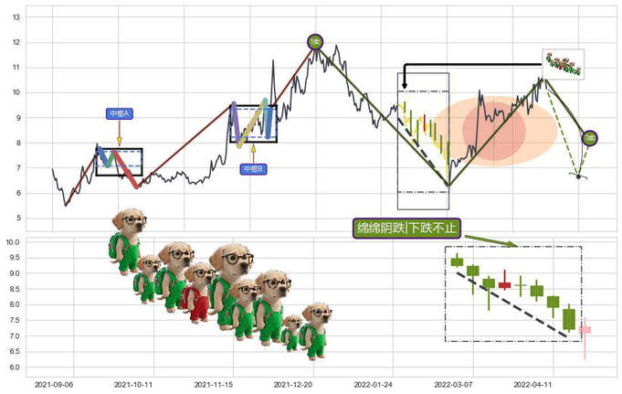➢ 🕰 价格走势在2022-02-28至2022-04-18期间形成绵绵阴跌|下跌不止,残存影响值:-2.32
