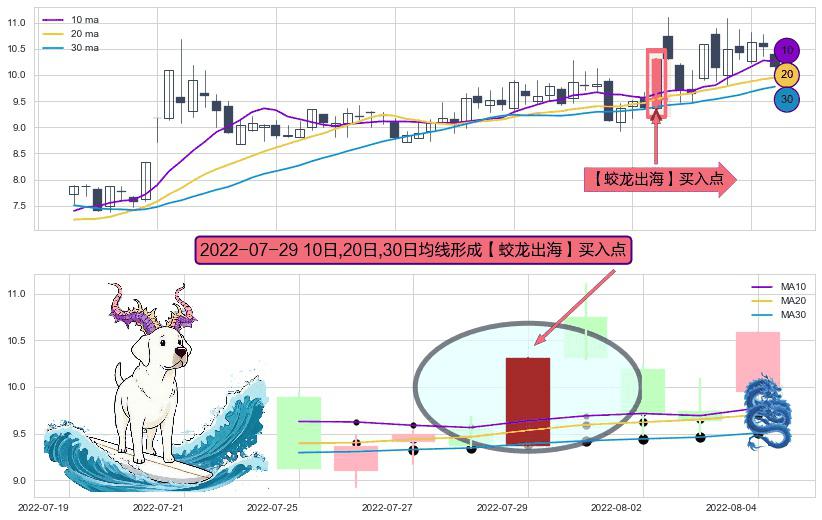 形态多维评估: ⚀ 2022-07-29日显现 10日-20日-30日均线 【蛟龙出海】买入点 看多信号,后市看涨,买入