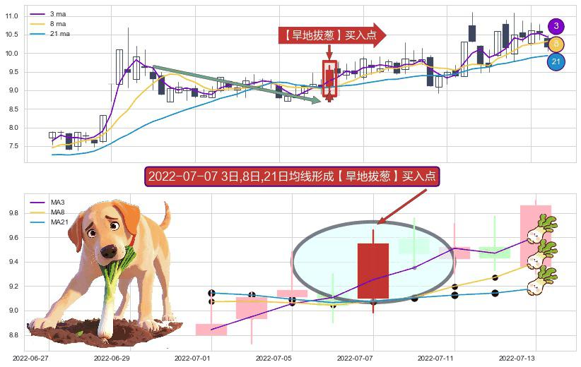形态多维评估: ⚀ 2022-07-07日显现 3日-8日-21日均线 【旱地拔葱】买入点 看多信号,后市看涨,买入