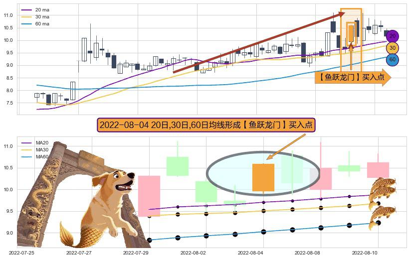 形态多维评估: ⚀ 2022-08-04日显现 20日-30日-60日均线 【鱼跃龙门】买入点 看多信号,后市看涨,买入
