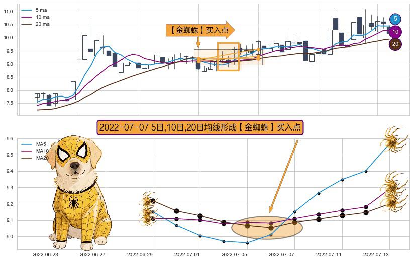 形态多维评估: ⚀ 2022-07-07日显现 5日-10日-20日均线 【金蜘蛛】买入点 看多信号,后市看涨,买入