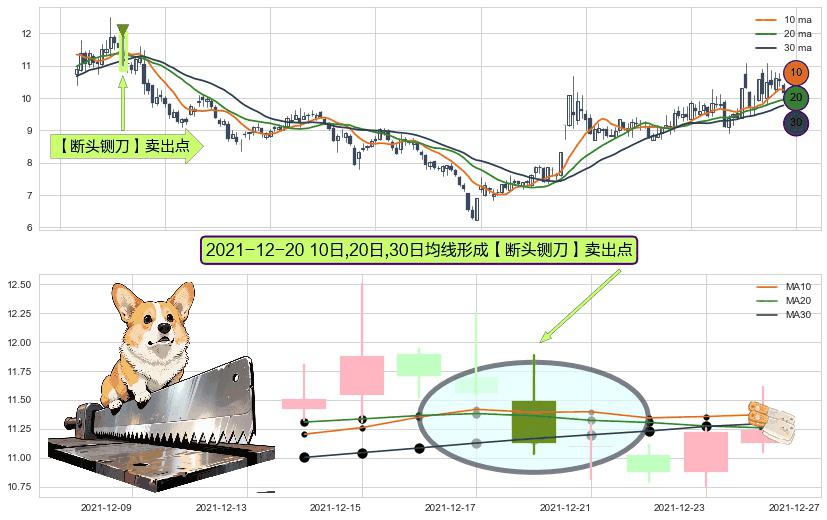 形态多维评估: ⚀ 2021-12-20日显现 10日-20日-30日均线 【断头铡刀】卖出点 看空信号,后市看跌,卖出