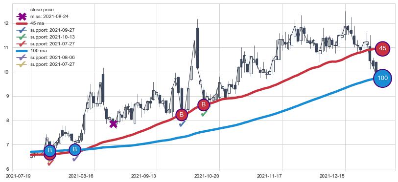 上涨趋势2021-07-19-2021-12-29,均线100, 45确认关键支撑4处