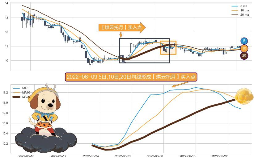 ⚀ 2022-05-23日-2022-06-24日显现 5日-10日-20日均线 【烘云托月】买入点 看多信号,后市看涨,买入