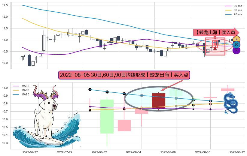 ⚀ 2022-08-05日显现 30日-60日-90日均线 【蛟龙出海】买入点 看多信号,后市看涨,买入