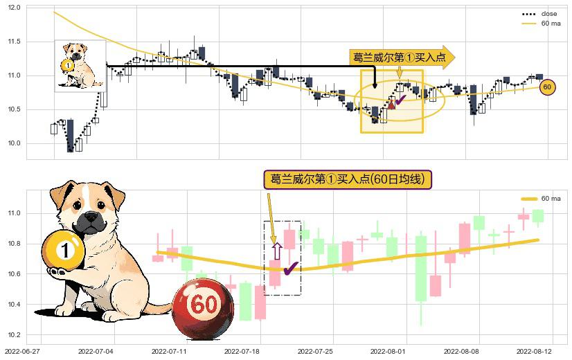 ⚀ 2022-07-19-日显现 葛兰威尔均线 60日均线 第买①入点 走势反转见底信号,后市看涨,买进信号